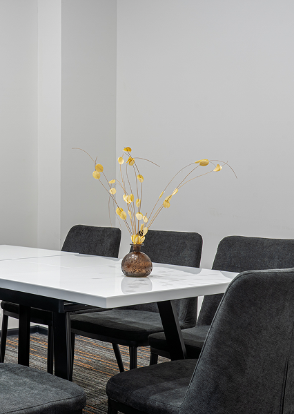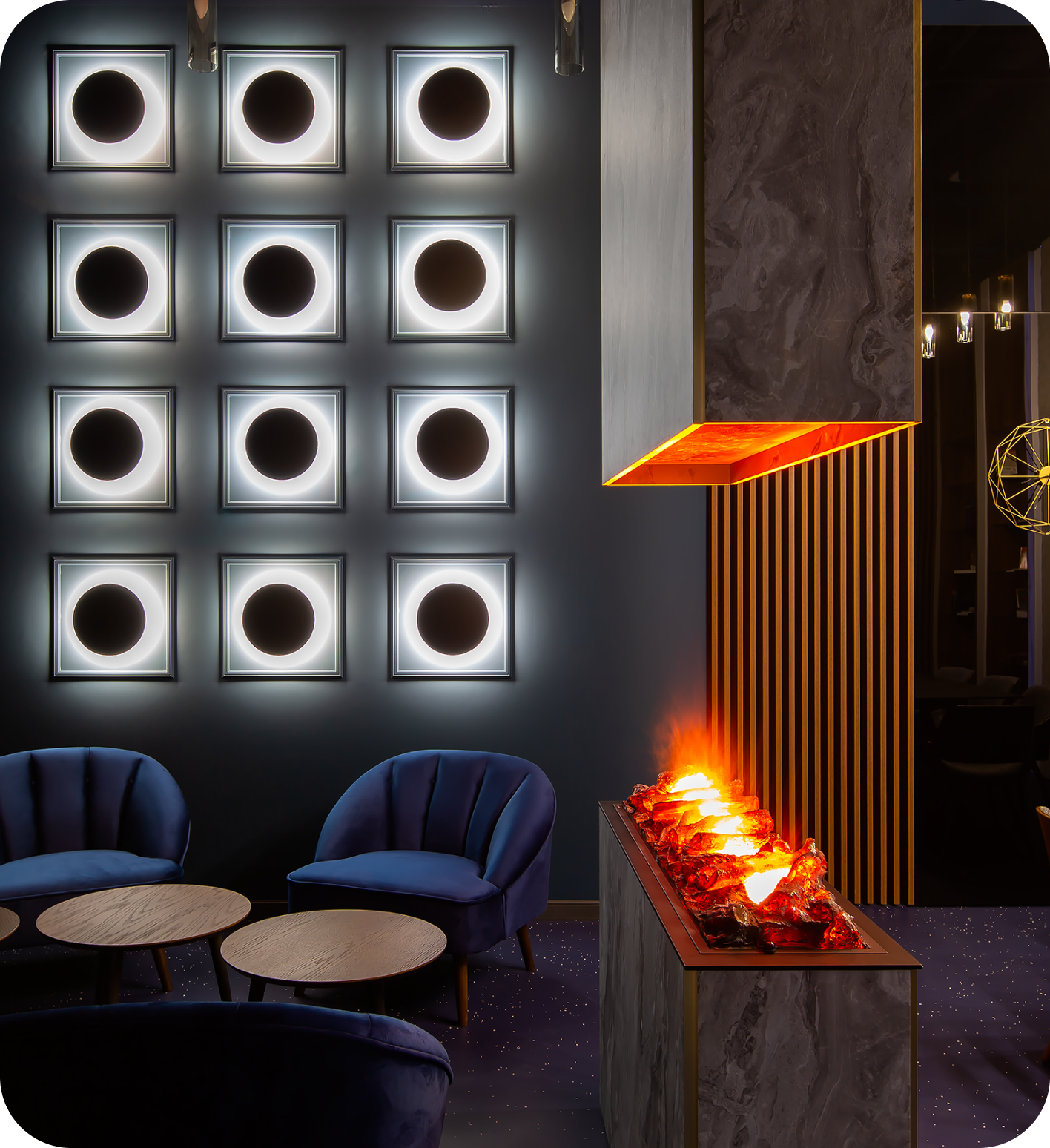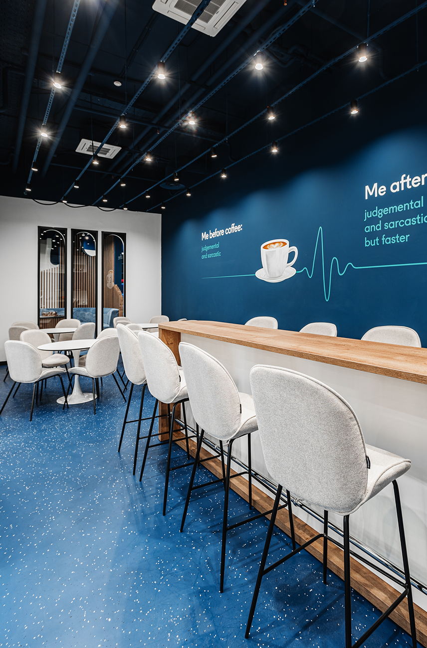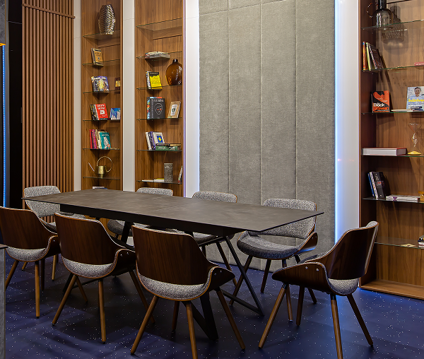 Новый офис компании отличается премиальным оформлением: высокие потолки, наливной пол, глубокие цвета создают особую атмосферу.