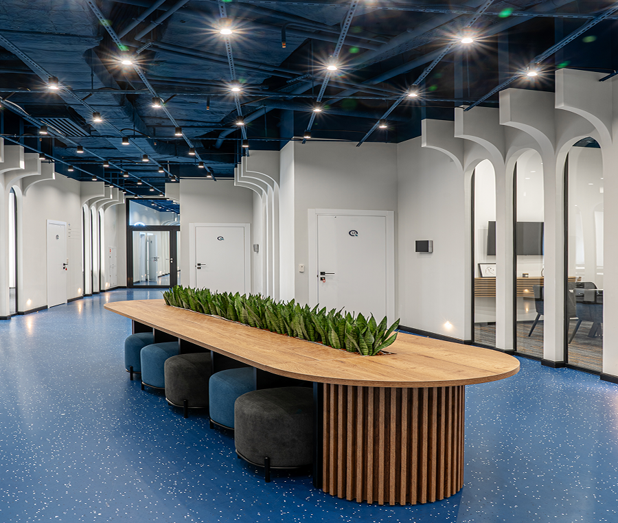 Необычные дизайнерские решения и элементы декора гармонично сочетаются с минималистичными и практичными рабочими зонами, а качественные износостойкие материалы гарантируют, что офис сохранит безупречный вид и не потребует дополнительных вложений долгие годы. Мы, как управляющая компания крупного БЦ, на собственном опыте знаем, как это важно.