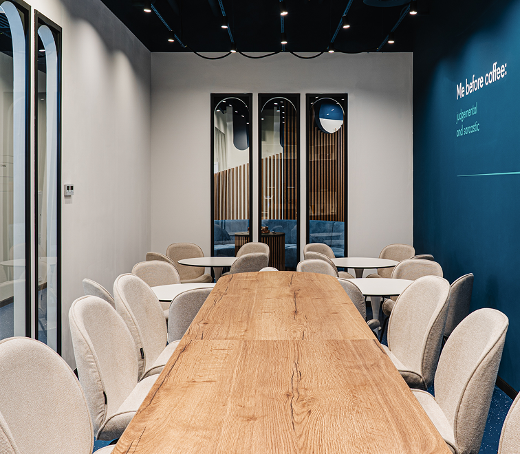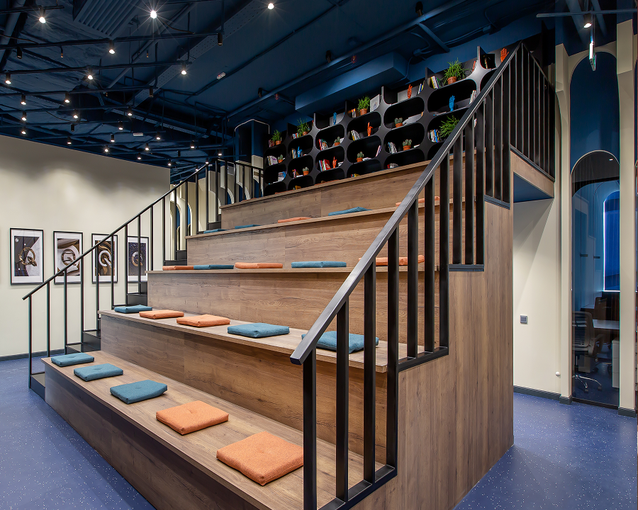 В распоряжении сотрудников — многофункциональные пространства для обучений и встреч, амфитеатр для проведения мероприятий и специализированная библиотека с актуальными материалами.