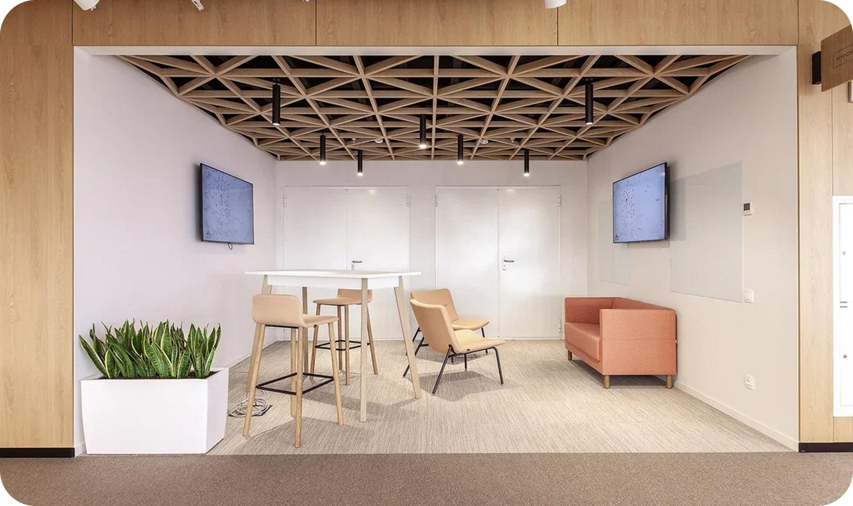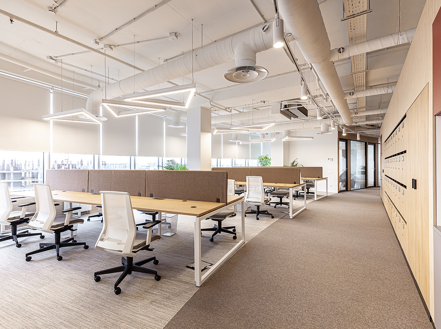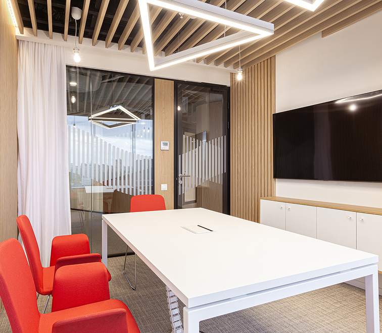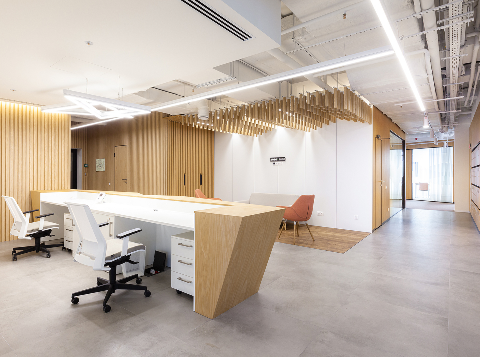 Штаб-квартира получилась современной, спокойной и располагающей, а грамотное проектирование и наше proptech-решение Q:OS позволили значительно сократить площади, не пренебрегая комфортом. Теперь сотрудники компании могут пользоваться технологичным пространством, а руководство — не думать о сервисе и не переплачивать за пустующие площади. В этом и преимущество формата fit-out: всё от визуализации офиса до сервисного обслуживания реализуется под ключ в рамках одного окна, а любая задача рассматривается генподрядчиком комплексно.